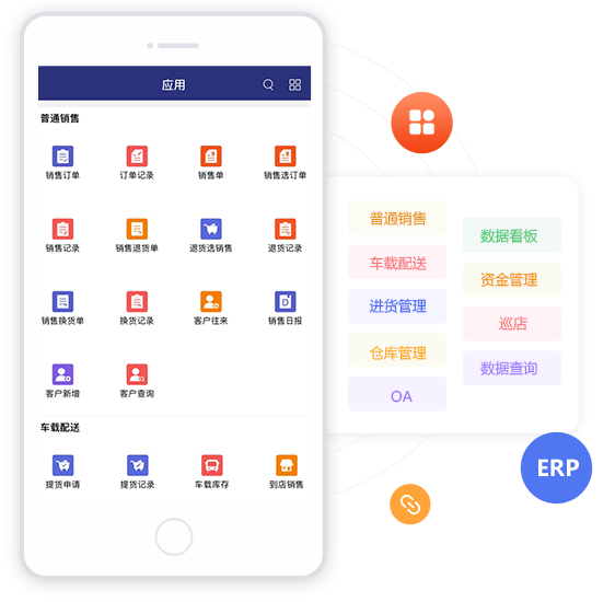 覆盖ERP大多数功能,可自主添加到首页常用模块